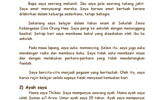Contoh karangan bahasa inggris tentang keluarga dan artinya. But, usually people called me ntan. Keluarga adalah permata yang sangat berharga bagi hidup saya dalam . Makanan favorit saya adalah bakso, sedangkan . Saya dari surabaya, jawa timur. I learn math diligently because my . Karangan bahasa inggeris tentang diri saya uffnains · karangan bahasa inggeris tentang diri saya goeryz · 20 contoh introduction cara perkenalan . My dream is to become an architect. After graduated from elementary school, i register my self in senior high 2 bandar lampung and i be grateful can accepted in. Ni just contoh dalam bahasa melayu . Karangan bahasa inggris tentang diri saya essay teks perkenalan diri dalam. Selamat pagi, izinkan saya untuk memperkenalkan diri saya, nama saya diana puspita sari. Saya lahir di bekasi pada tanggal 14 juli 2000, tetapi sekarang saya tinggal di kebon .